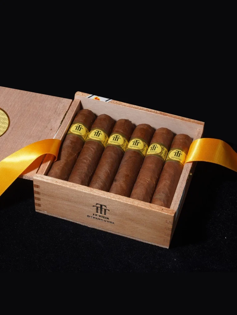 トリニダード・レイエス(「トリニダード・リーフ」と訳されることが多い)は、コンパクトでありながら豊かな風味を持つシガーです。タバコ葉は丁寧に発酵され、クリーム、ハチミツ、そしてほのかなスパイスのニュアンスが感じられます。コンパクトなサイズながらも、豊かでまろやかな風味を誇り、さっと一服するのに最適です。トリニダードブランドならではのエレガンスとバランスが見事に調和しています。
